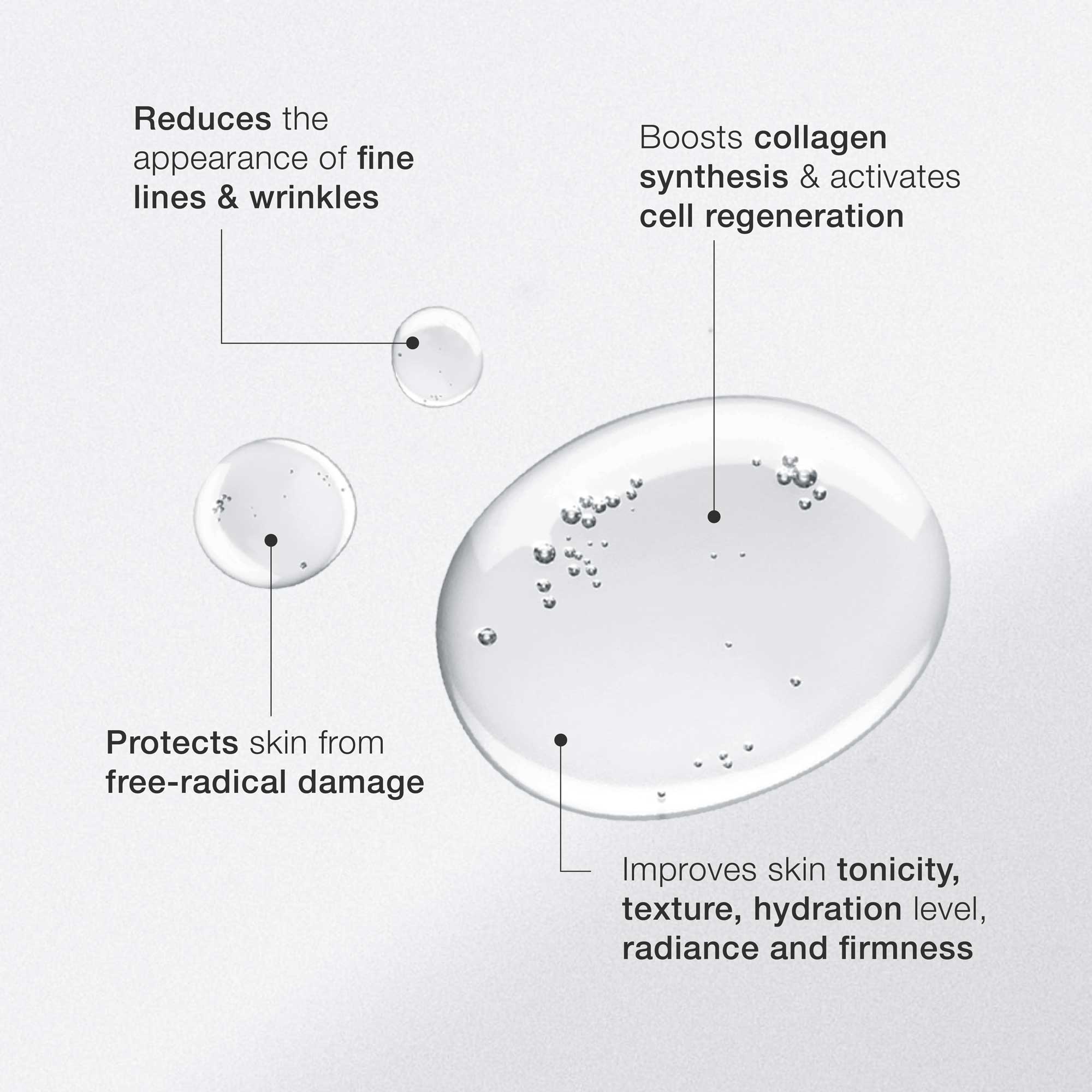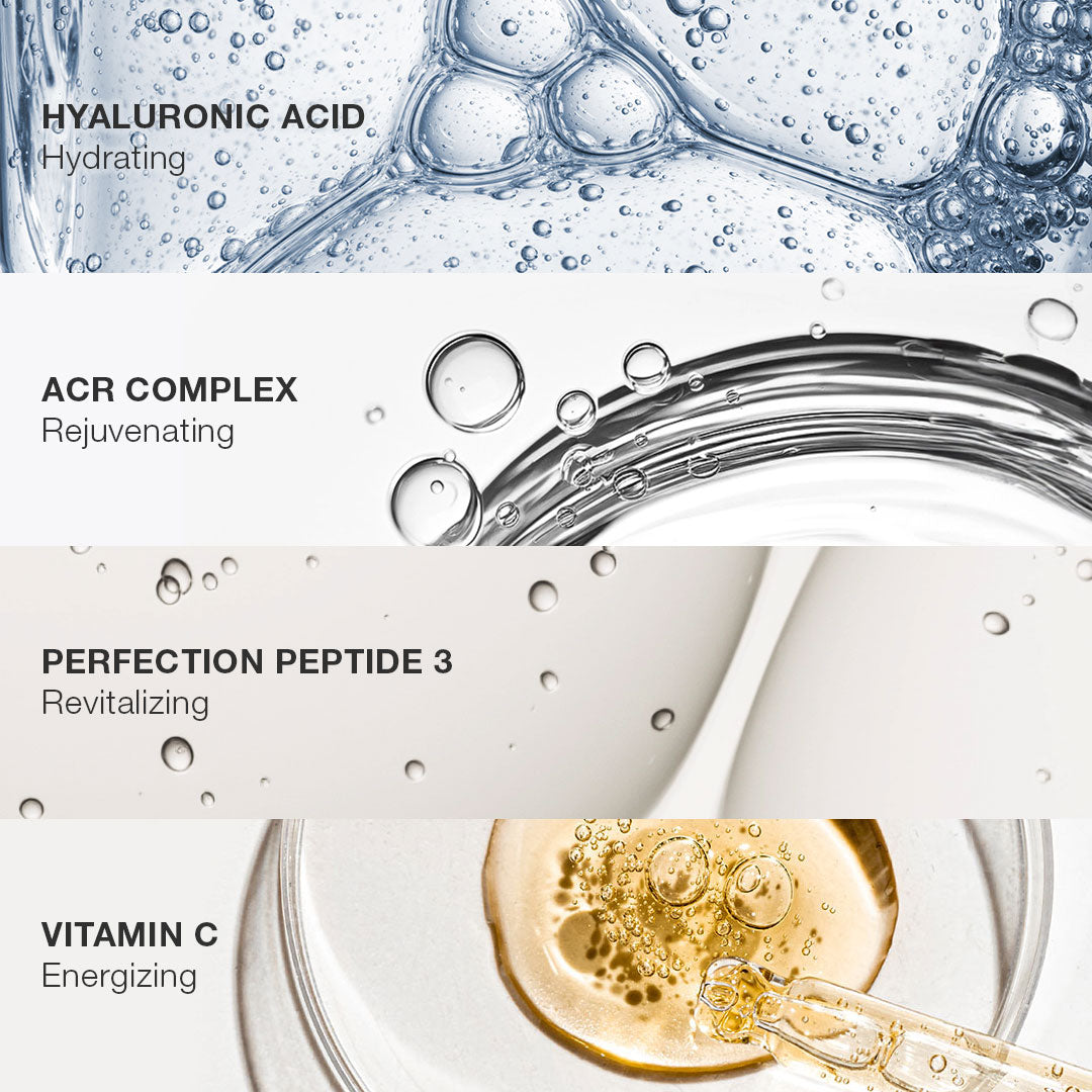 INCI*: SU, BÜTİLEN GLİKOL, GLİSERİN, PENTİLEN GLİKOL, POLİGLİSERİL-4 KAPRAT, PALMİTOİL DİPEPTİT-5 DİAMİNOBÜTİROL HİDROKSİTREONİN, PALMİTOİL DİPEPTİT-5 DİAMİNOHİDROKSİBÜTİRAT, SOYA İZOFLAVONLARI, SODYUM HİYALÜRONAT, MAGNEZYUM ASKORBİL FOSFAT, 3-O-ETİL ASKORBİK ASİT, LEPIDIUM SATIVUM FİLİZİ EKSTRESİ, HEKZANOİL DİPEPTİT-3 NORLEUSİN ASETAT, TOKOFERİL ASETAT, RETİNİL PALMITAT, HELIANTHUS ANNUUS (AYÇİÇEĞİ) ÇEKİRDEĞİ YAĞI, TOKOFEROL, KSANTAN GUM, DİSODYUM EDTA, LESİTİN, ALKOL DENATÜRÜ, SODYUM HİDROKSİT, POLİSORBAT 80, KARAGEENAN, DEHİDROASETİK ASİT, HİDROKSİASETOFENON, PARFÜM (KOKU), BENZİL ALKOL, FENOKSİETANOL, BENZOİK ASİT.